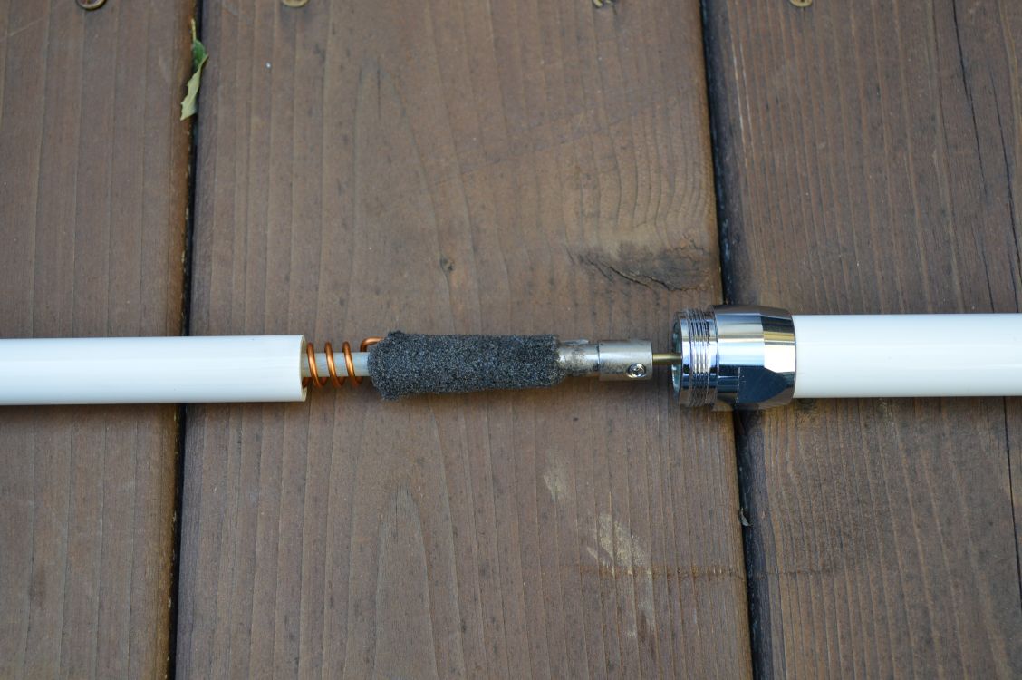 Then slide the innards back into the antenna and tighten the coupling nut that seals the two halves of the antenna.